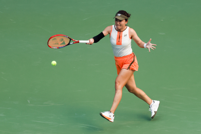 郑钦文在比赛前热身 新华社记者 辛梦晨 摄